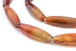 Commonly referred to by their place of production, Idar Oberstein Beads carry to this day a reputation for quality craftsmanship. Idar Oberstein in West Germany rose to prominence during the early 19th century as a significant site for stone-cutting and bead-making. By the 1860s at least 56 stone mills were operating along the river Nahe. Skilled craftsman cut and polished stones imported from Brazil and other places to produce distinctive designs for trade in West Africa and other places. These beads have been highly sought after due to their unique shape and colors and are coveted by collectors and bead connoisseur alike. Each unique strand measures approximately 29" in length and consists of a unique assembly of beads. Some beads may be chipped or broken due to age. You will receive the exact strand pictured.