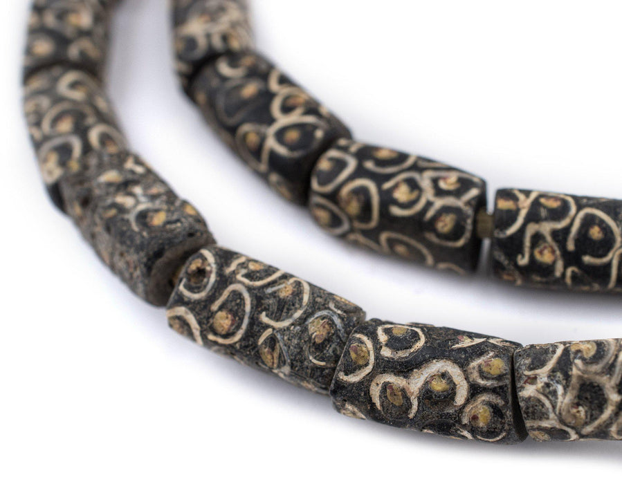 Antique Fried-Egg Matching Black Venetian Trade Beads