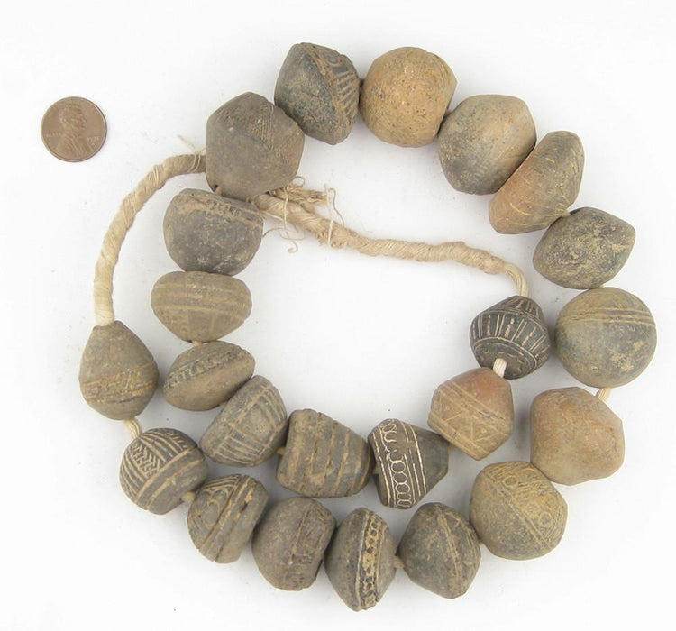 This beautiful strand of Mali Spindle Whorl beads is handmade with clay and individually inscribed. It is made by the Dogon tribe of Mali. This is an unusual one-of-a-kind antique strand. You will receive the exact strand pictured.