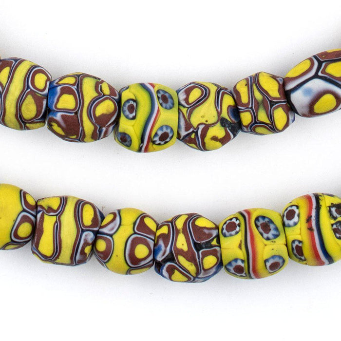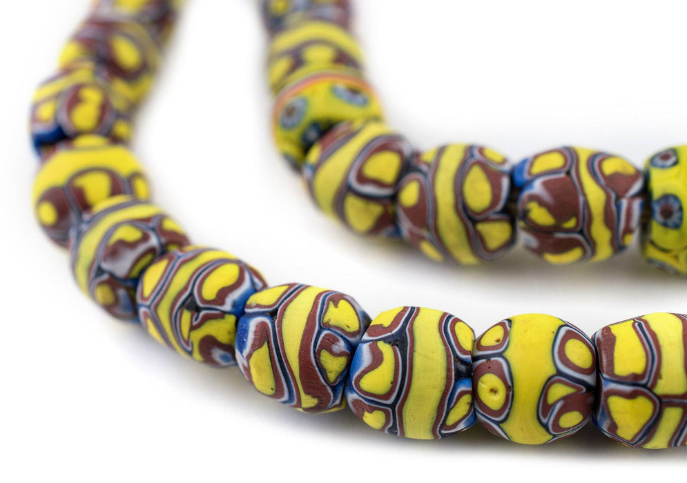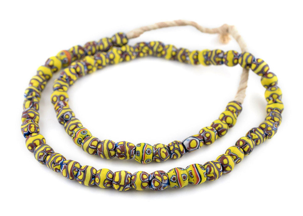 Take a look at this beautiful antique strand of Venetian Millefiori trade beads! Celebrated among the most distinctive of beads, the Millefiori has become nearly synonymous with the West African Trade. Made from famed Murano glass, Millefiori beads derive their name from the Italian words for “Thousand Flowers” due to the characteristic floral motifs that decorate their surface. Millefiori beads were made throughout the 19th and 20th century primarily for export to Africa. Today they are found in many countries including Ivory Coast, Nigeria, and Ghana where they are also known by their Ashanti name “Chachasao”.