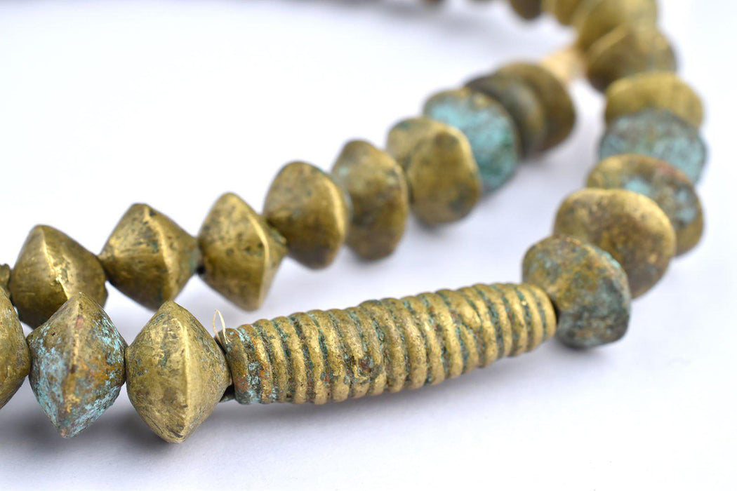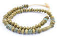 From the villages of Nigeria, these beautiful saucer-shaped beads were crafted by skilled artisans many decades ago. Each bead measures approximately 7 x 11-13mm with hole size of 2mm. Strands measure approximately 26" with approximately 68 beads per strand. Limited supply available.