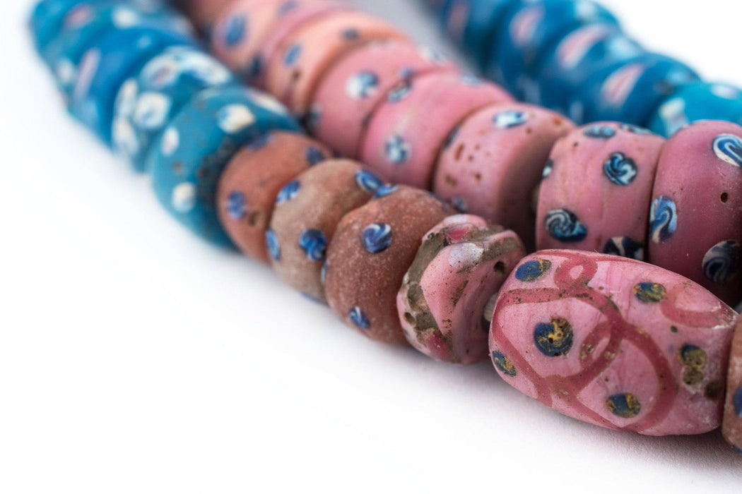 Antique Pink and Blue Sliced Venetian Pineapple Beads