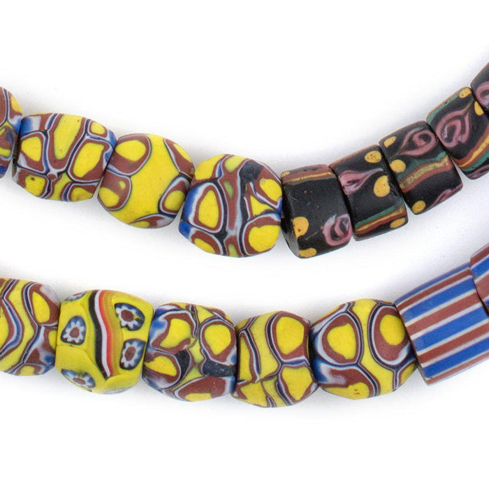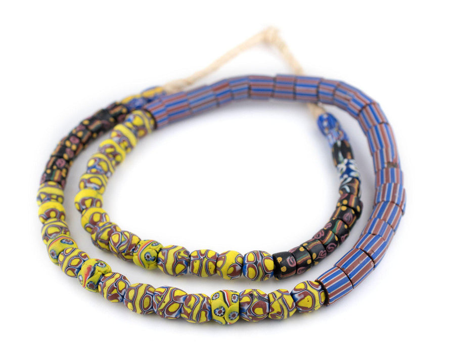 Take a look at this beautiful antique strand of Venetian Millefiori trade beads! Celebrated among the most distinctive of beads, the Millefiori has become nearly synonymous with the West African Trade. Made from famed Murano glass, Millefiori beads derive their name from the Italian words for “Thousand Flowers” due to the characteristic floral motifs that decorate their surface. Millefiori beads were made throughout the 19th and 20th century primarily for export to Africa. Today they are found in many countries including Ivory Coast, Nigeria, and Ghana where they are also known by their Ashanti name “Chachasao”.