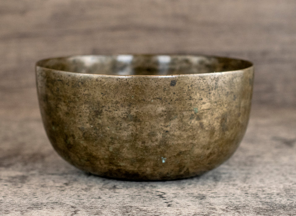 Introducing a beautiful antique thadobati singing bowl that has been crafted by skilled artisans from the Himalayan region. This stunning singing bowl is a one-of-a-kind piece that dates back to the early 19th century and has been passed down through generations. Its unique shape makes it a true masterpiece of traditional craftsmanship.