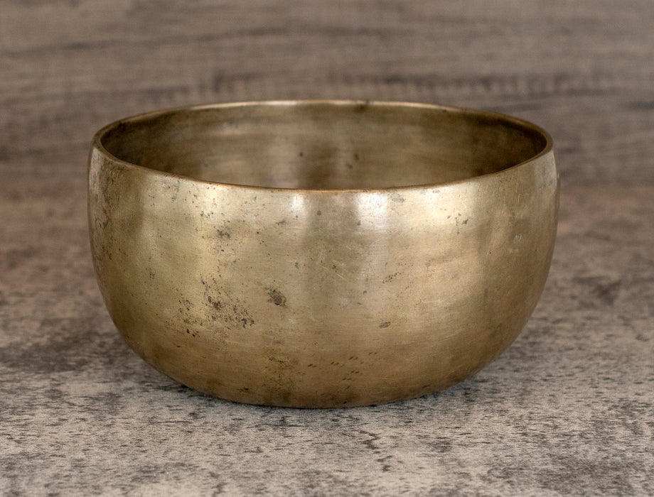 Introducing a beautiful antique thadobati singing bowl that has been crafted by skilled artisans from the Himalayan region. This stunning singing bowl is a one-of-a-kind piece that dates back to the early 19th century and has been passed down through generations. Its unique shape makes it a true masterpiece of traditional craftsmanship.