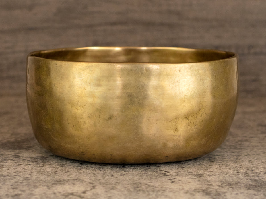 Introducing a beautiful antique thadobati singing bowl that has been crafted by skilled artisans from the Himalayan region. This stunning singing bowl is a one-of-a-kind piece that dates back to the early 19th century and has been passed down through generations. Its unique shape makes it a true masterpiece of traditional craftsmanship.