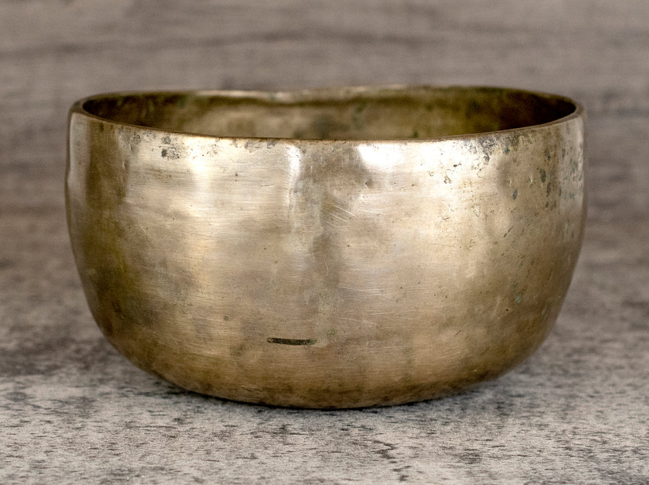 Introducing a beautiful antique thadobati singing bowl that has been crafted by skilled artisans from the Himalayan region. This stunning singing bowl is a one-of-a-kind piece that dates back to the early 19th century and has been passed down through generations. Its unique shape makes it a true masterpiece of traditional craftsmanship.