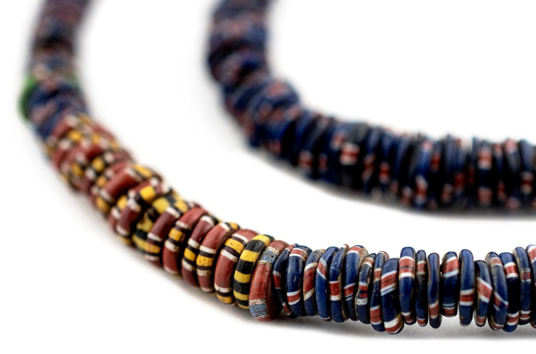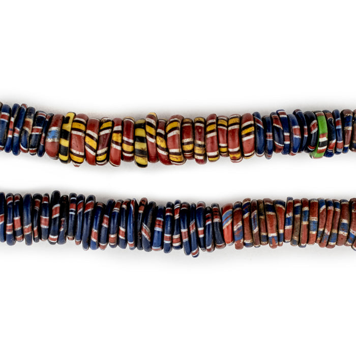 These authentic Aja beads are made from Venetian Glass. Aja beads such as these are identified by their distinctive disk-like shape. To this day, Venetian and Murano glass makers are world renown for the quality of their craftsmanship. Likely dating to the early 1900s, these antique glass beads were traded primarily to West Africa. Each bead measures approximately 1-3 x 6-8mm. Bead count is intended to be approximate. You will receive the exact strand pictured. Only one available.