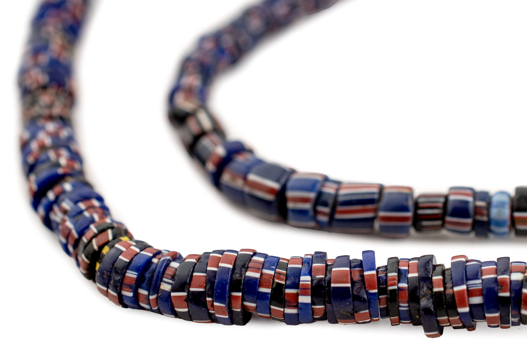 These authentic Aja beads are made from Venetian Glass. Aja beads such as these are identified by their distinctive disk-like shape. To this day, Venetian and Murano glass makers are world renown for the quality of their craftsmanship. Likely dating to the early 1900s, these antique glass beads were traded primarily to West Africa. Each bead measures approximately 1-3 x 5-8mm. Bead count is intended to be approximate. You will receive the exact strand pictured. Only one available.