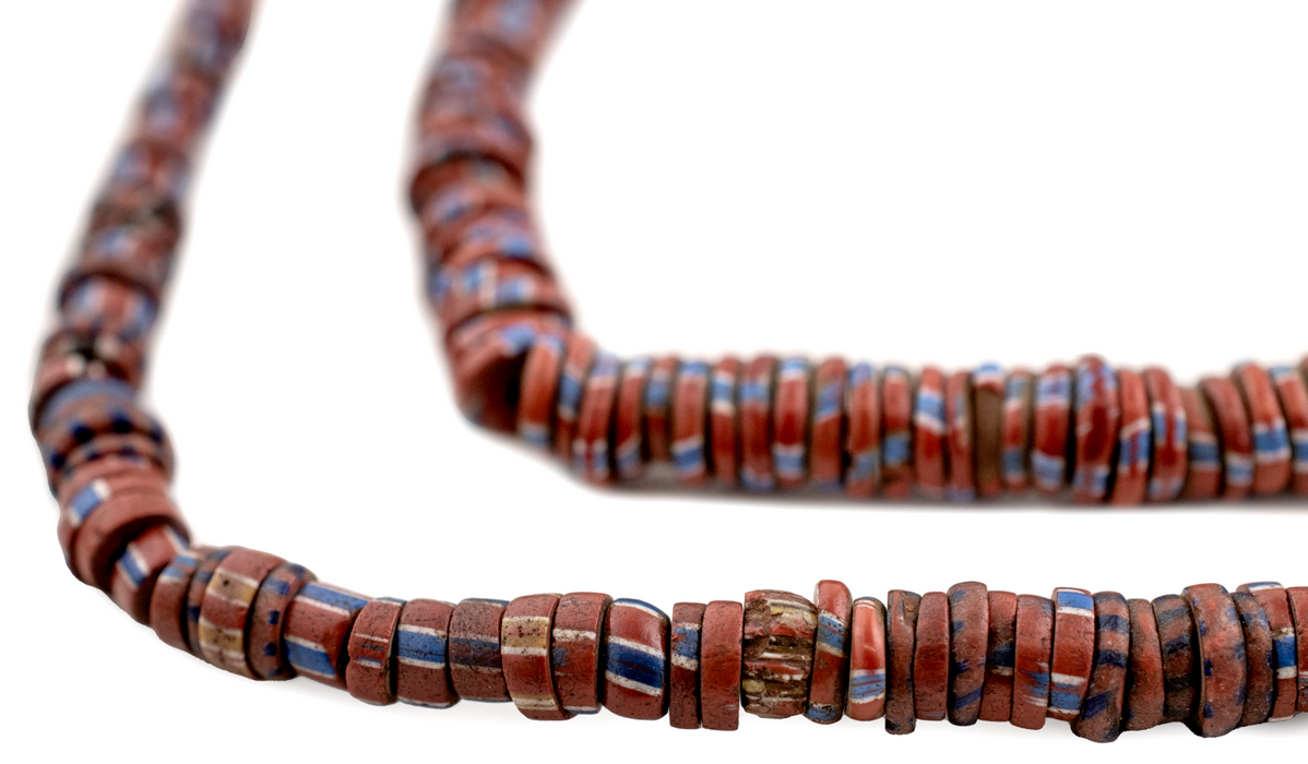 These authentic Aja beads are made from Venetian Glass. Aja beads such as these are identified by their distinctive disk-like shape. To this day, Venetian and Murano glass makers are world renown for the quality of their craftsmanship. Likely dating to the early 1900s, these antique glass beads were traded primarily to West Africa. Each bead measures approximately 1-2 x 5-7mm. Bead count is intended to be approximate. You will receive the exact strand pictured. Only one available.