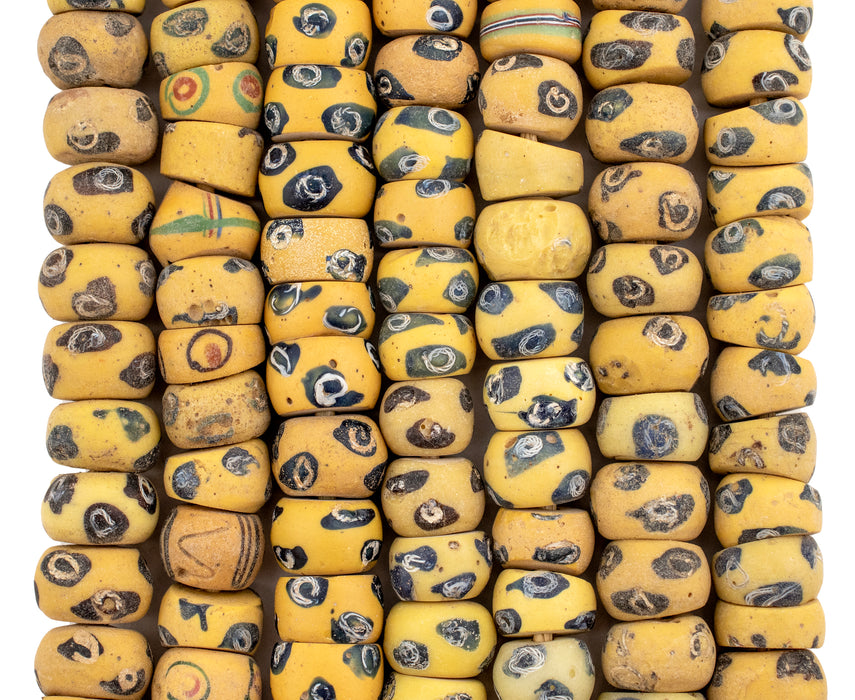 Admire this unique strand of authentic antique Venetian Eye King Beads, which are part of the "King Bead" family. Often displayed as a symbol of status, beads such as these derive their name through their association with African royalty. These Trade beads were likely crafted during the 19th century by specialized artisans whose technical and artistic know-how was harnessed to facilitate the exchange of goods and services throughout the African Continent. Today, King Beads are most frequently found in West African countries such as Ghana and Nigeria and they are coveted by collectors and bead aficionados alike who appreciate the rich cultural, artistic, and historical legacy that these works of art represent.