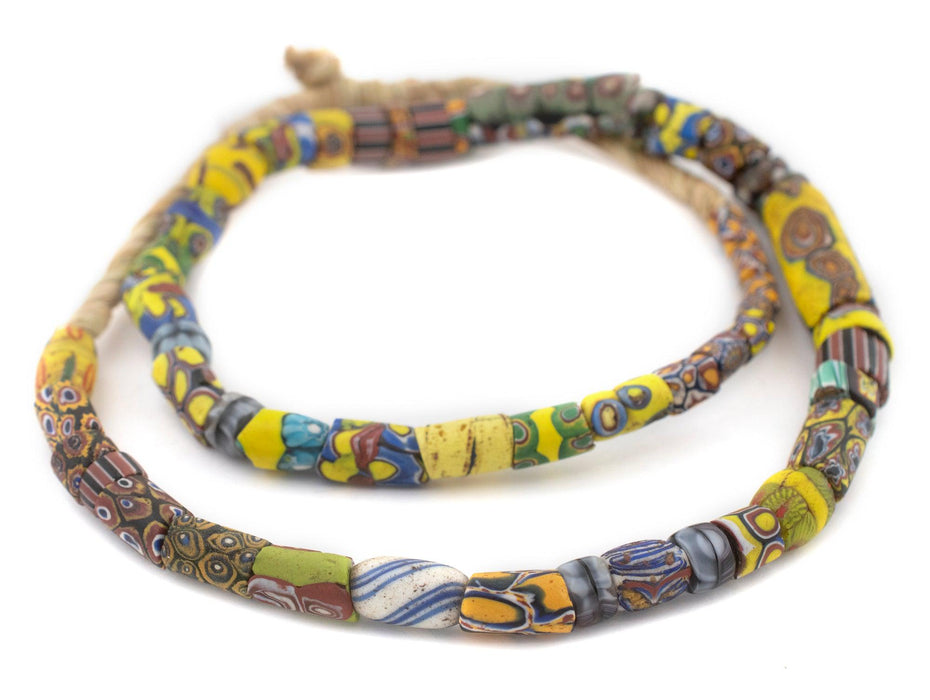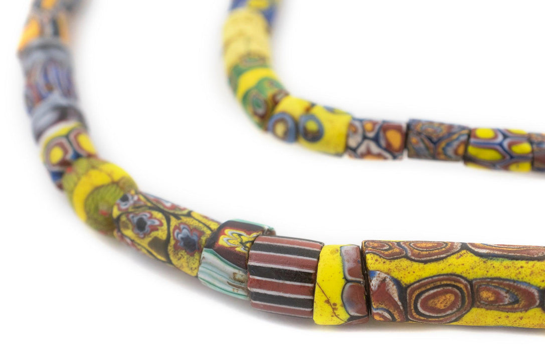 Take a look at this beautiful antique strand of Venetian Millefiori trade beads! Celebrated among the most distinctive of beads, the Millefiori has become nearly synonymous with the West African Trade. Made from famed Murano glass, Millefiori beads derive their name from the Italian words for “Thousand Flowers” due to the characteristic floral motifs that decorate their surface. Millefiori beads were made throughout the 19th and 20th century primarily for export to Africa. Today they are found in many countries including Ivory Coast, Nigeria, and Ghana where they are also known by their Ashanti name “Chachasao”. Most beads are commonly cylindrical in shape but other varieties exist including rectangular, oval, and sometimes even hexagonal beads. You will receive the exact strand pictured. Measurements are approximations.