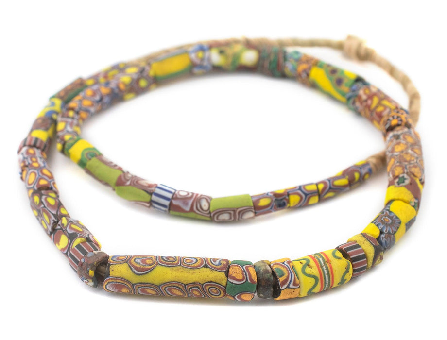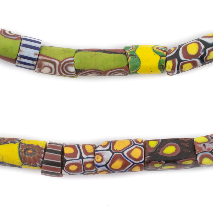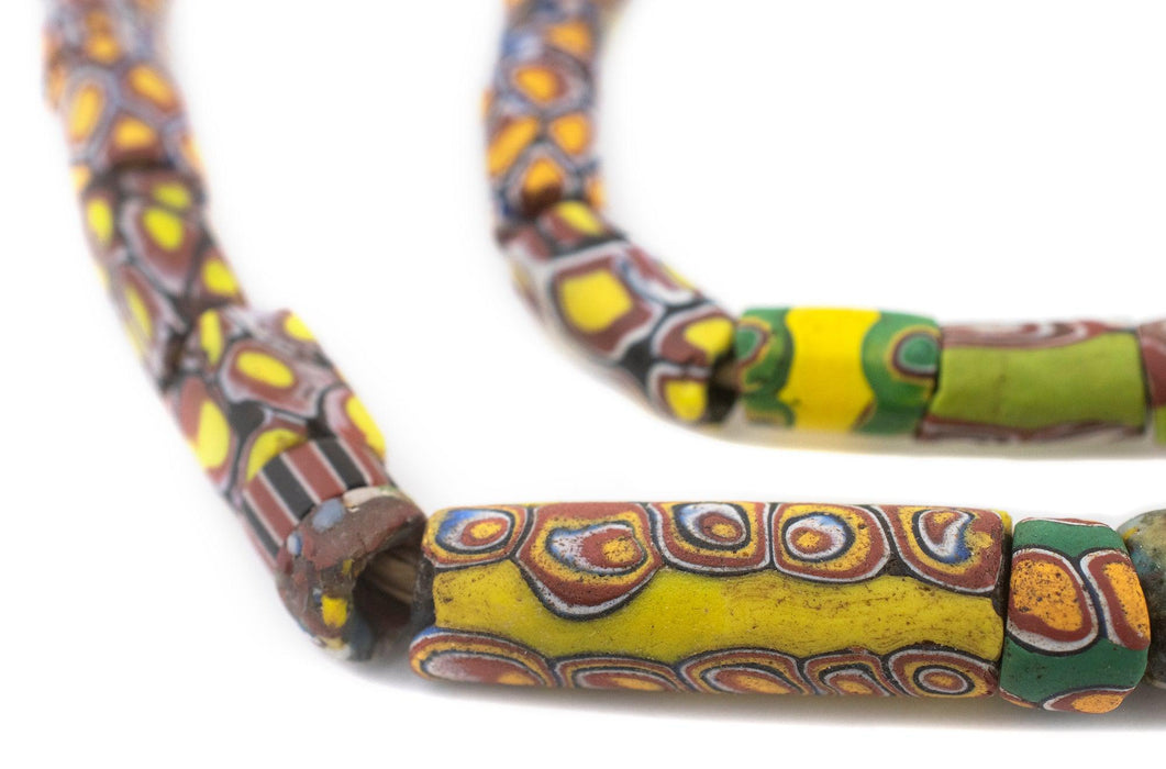 Take a look at this beautiful antique strand of Venetian Millefiori trade beads! Celebrated among the most distinctive of beads, the Millefiori has become nearly synonymous with the West African Trade. Made from famed Murano glass, Millefiori beads derive their name from the Italian words for “Thousand Flowers” due to the characteristic floral motifs that decorate their surface. Millefiori beads were made throughout the 19th and 20th century primarily for export to Africa. Today they are found in many countries including Ivory Coast, Nigeria, and Ghana where they are also known by their Ashanti name “Chachasao”. Most beads are commonly cylindrical in shape but other varieties exist including rectangular, oval, and sometimes even hexagonal beads. You will receive the exact strand pictured. Measurements are approximations.