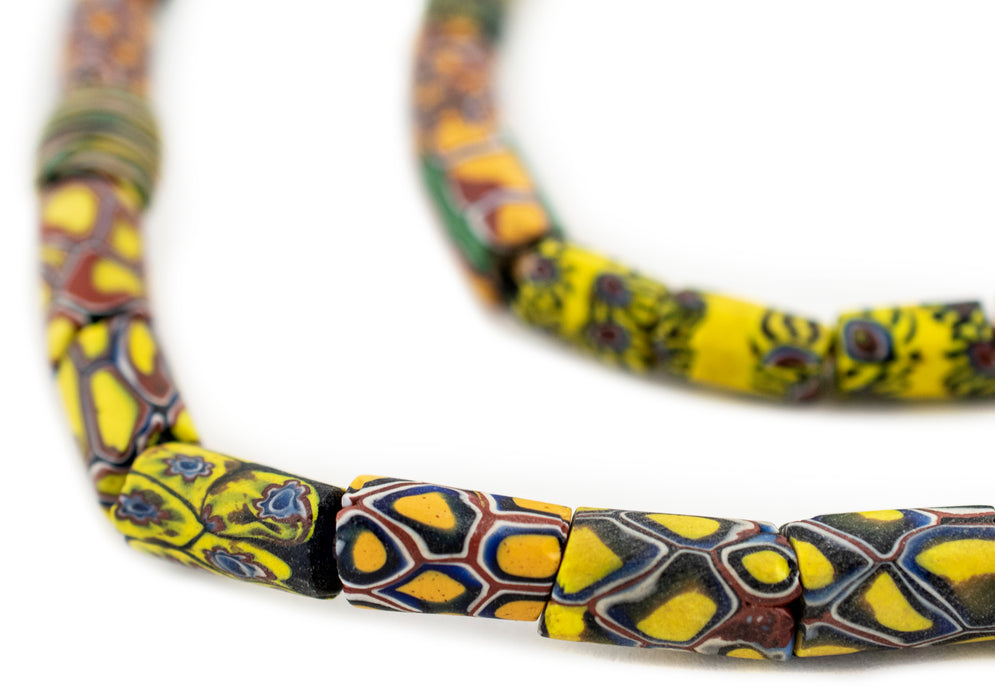 Take a look at this beautiful antique strand of Venetian Millefiori trade beads! Celebrated among the most distinctive of beads, the Millefiori has become nearly synonymous with the West African Trade. Made from famed Murano glass, Millefiori beads derive their name from the Italian words for “Thousand Flowers” due to the characteristic floral motifs that decorate their surface. Millefiori beads were made throughout the 19th and 20th century primarily for export to Africa. Today they are found in many countries including Ivory Coast, Nigeria, and Ghana where they are also known by their Ashanti name “Chachasao”. Most beads are commonly cylindrical in shape but other varieties exist including rectangular, oval, and sometimes even hexagonal beads. You will receive the exact strand pictured. Measurements are approximations.
