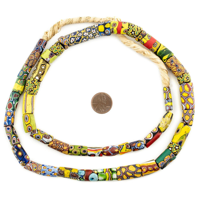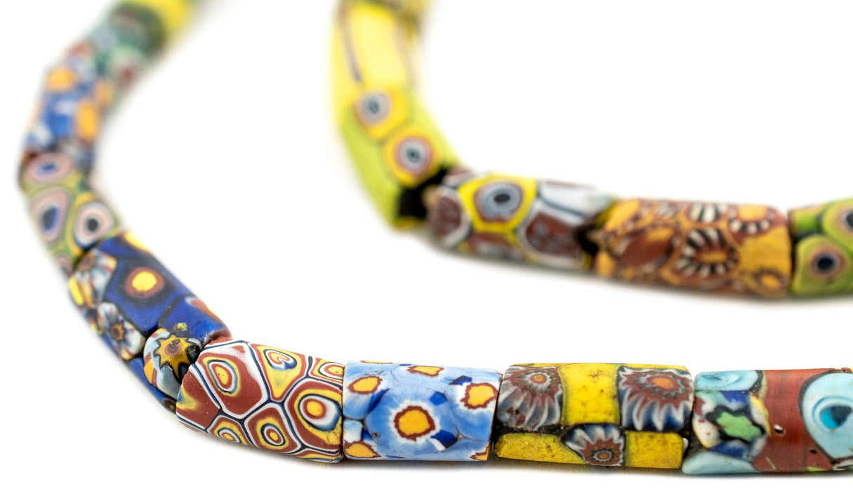 Take a look at this beautiful antique strand of Venetian Millefiori trade beads! Celebrated among the most distinctive of beads, the Millefiori has become nearly synonymous with the West African Trade. Made from famed Murano glass, Millefiori beads derive their name from the Italian words for “Thousand Flowers” due to the characteristic floral motifs that decorate their surface. Millefiori beads were made throughout the 19th and 20th century primarily for export to Africa. Today they are found in many countries including Ivory Coast, Nigeria, and Ghana where they are also known by their Ashanti name “Chachasao”. Most beads are commonly cylindrical in shape but other varieties exist including rectangular, oval, and sometimes even hexagonal beads. You will receive the exact strand pictured. Measurements are approximations.