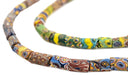 Take a look at this beautiful antique strand of Venetian Millefiori trade beads! Celebrated among the most distinctive of beads, the Millefiori has become nearly synonymous with the West African Trade. Made from famed Murano glass, Millefiori beads derive their name from the Italian words for “Thousand Flowers” due to the characteristic floral motifs that decorate their surface. Millefiori beads were made throughout the 19th and 20th century primarily for export to Africa. Today they are found in many countries including Ivory Coast, Nigeria, and Ghana where they are also known by their Ashanti name “Chachasao”. Most beads are commonly cylindrical in shape but other varieties exist including rectangular, oval, and sometimes even hexagonal beads. You will receive the exact strand pictured. Measurements are approximations.