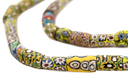 Take a look at this beautiful antique strand of Venetian Millefiori trade beads! Celebrated among the most distinctive of beads, the Millefiori has become nearly synonymous with the West African Trade. Made from famed Murano glass, Millefiori beads derive their name from the Italian words for “Thousand Flowers” due to the characteristic floral motifs that decorate their surface. Millefiori beads were made throughout the 19th and 20th century primarily for export to Africa. Today they are found in many countries including Ivory Coast, Nigeria, and Ghana where they are also known by their Ashanti name “Chachasao”. Most beads are commonly cylindrical in shape but other varieties exist including rectangular, oval, and sometimes even hexagonal beads. You will receive the exact strand pictured. Measurements are approximations.