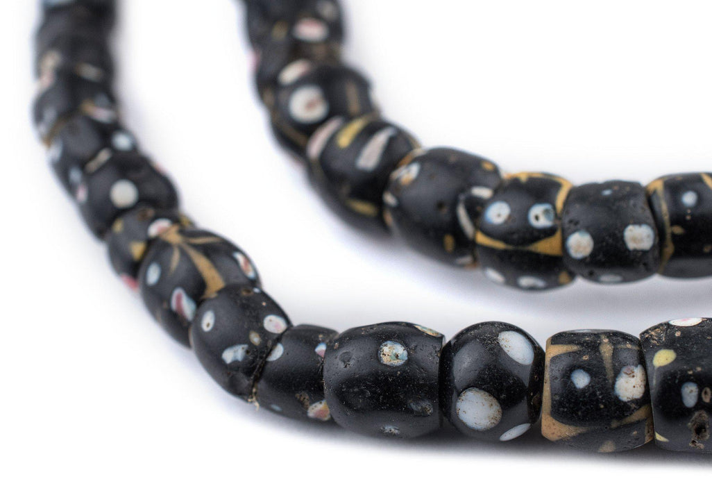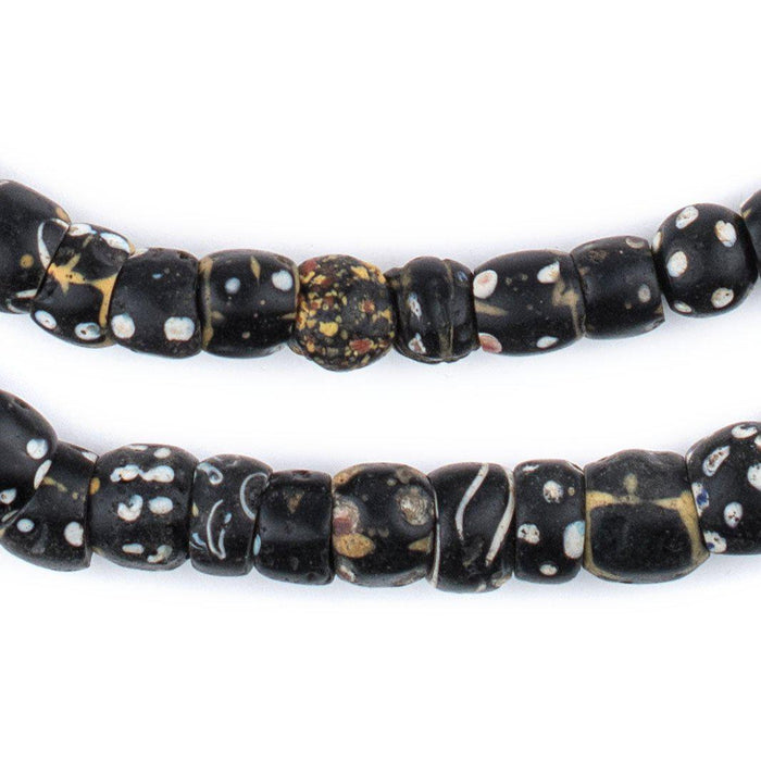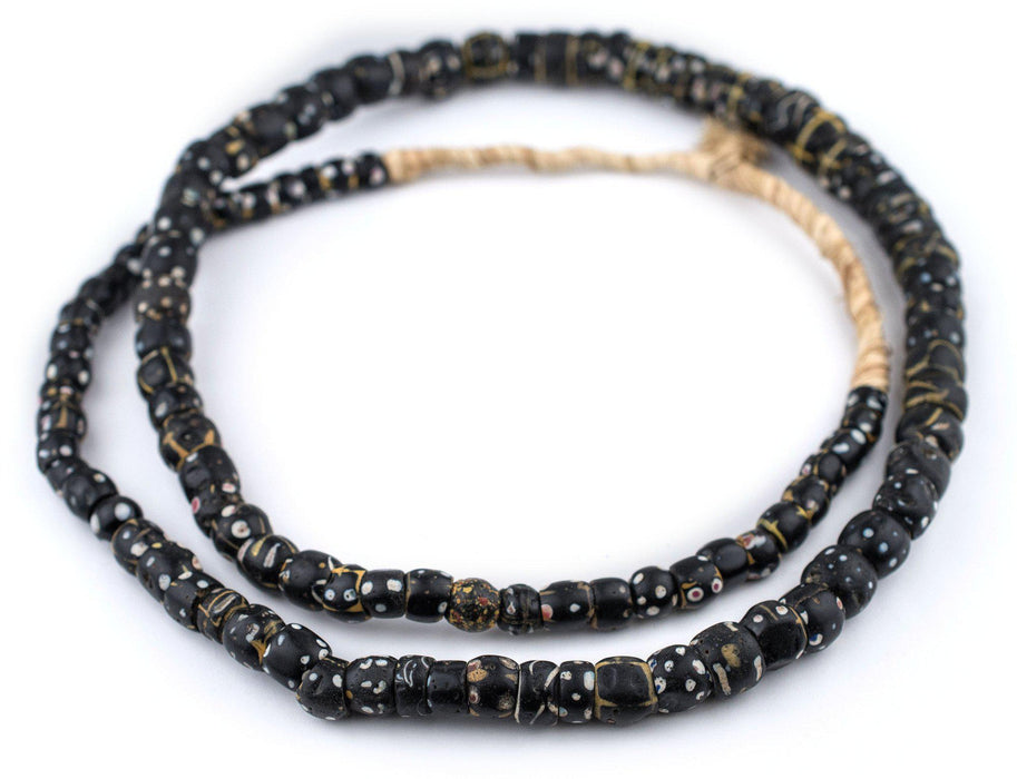 Old Trade beads such as these are as beautiful in their design as they are exceptional in their craftsmanship. Venetian glass beads were known for centuries as the highest quality and the workshops of Venice rose to prominence as the source for many of the iconic beads that are today associated with the African trade. This authentic strand consists primarily of hard to find Black and White Eye Beads together with some other Fancy rondelle beads. This long strand measures approximately 32" with beads arranged in a graduated fashion. These special beads would be suitable for the collector, bead connoisseur, or discerning designer. Some beads may be cracked or chipped due to age. You will receive the exact strand pictured.