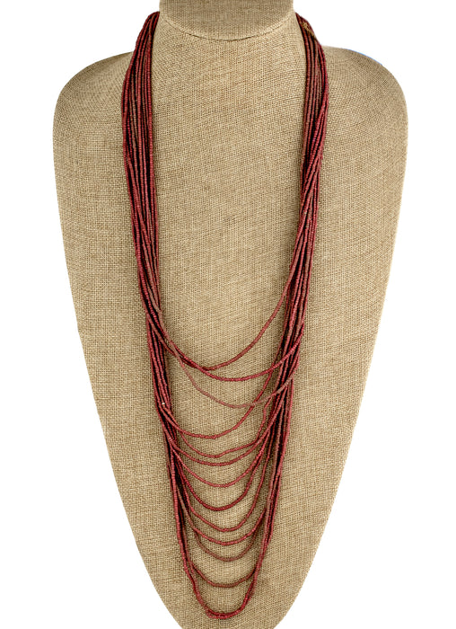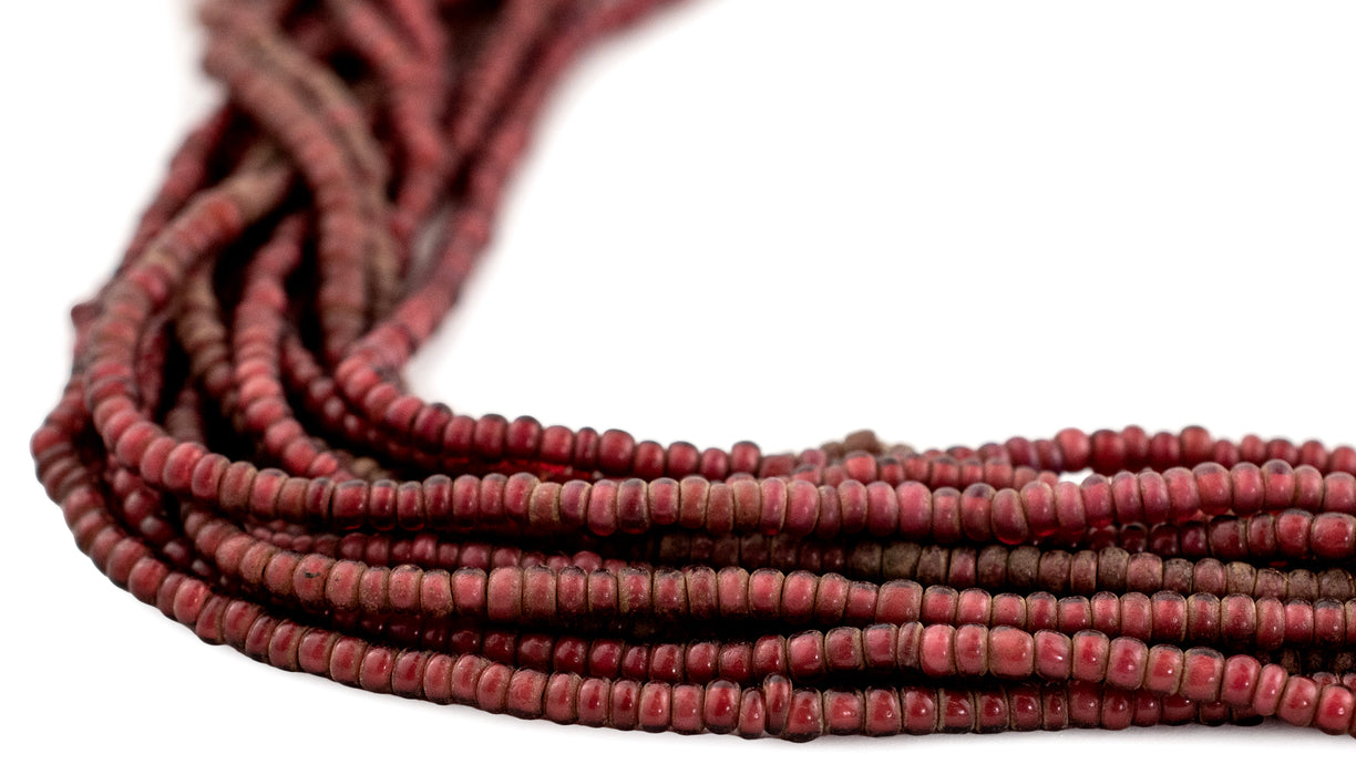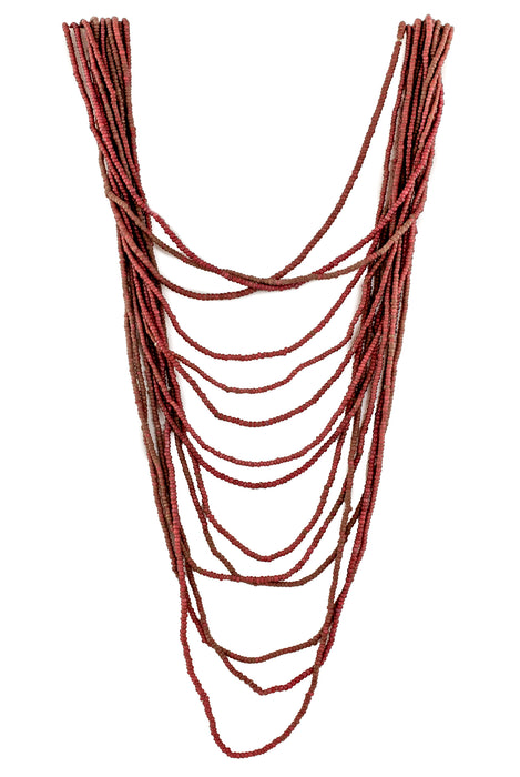 Admire this unique beaded necklace fashioned from old white heart seed beads. Found in Nigeria, pieces such as this were created using old Venetian seed beads and worn by tribespeople in Nigeria. The necklace is comprised of approximately 14 interlaced strands of beads of different lengths. Necklace may be worn or beads repurposed in your own creations. Note that this piece is not a finished necklace in traditional sense as it is simply tied in the back and does not have a clasp or other kind of enclosure. You will receive the unique strand pictured measuring approximately 36" in length with individual beads 2mm in diameter.