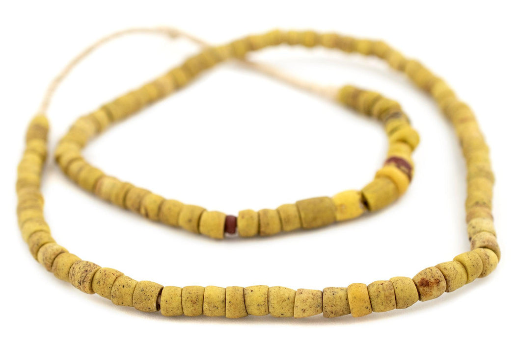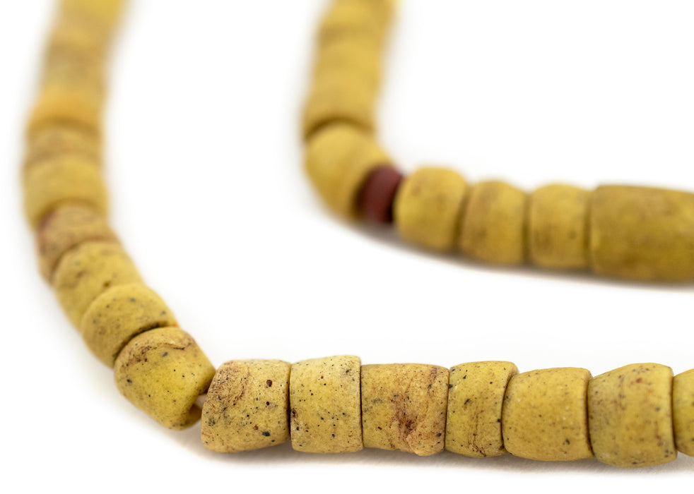 Take a look at this amazing strand of yellow Hebron beads, brought here from Africa and are sometimes referred to as "Kano Beads". They are said to have been made in Hebron before 1800. Each bead measures approximately 5-7 x 8mm, with a hole size of approximately 2-3mm. You will receive one strand measuring approximately 29". There are around 103 beads on each strand. Unusual variety. Grab this unique strand for yourself today.