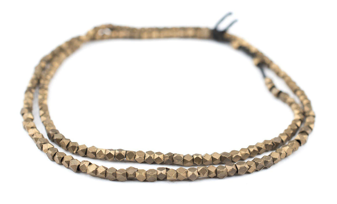 Take a look at this great strand of brass beads fashioned in a cube shape. Each strand is 18" inches long with approximately 180 beads measuring 2 x 2-3mm. These great beads are highly versatile and may be used as spacers or accents in your unique designs. A great addition to your beading toolkit! Please note a small percentage of beads per strand may not be usable due to irregularities as shown in photo.