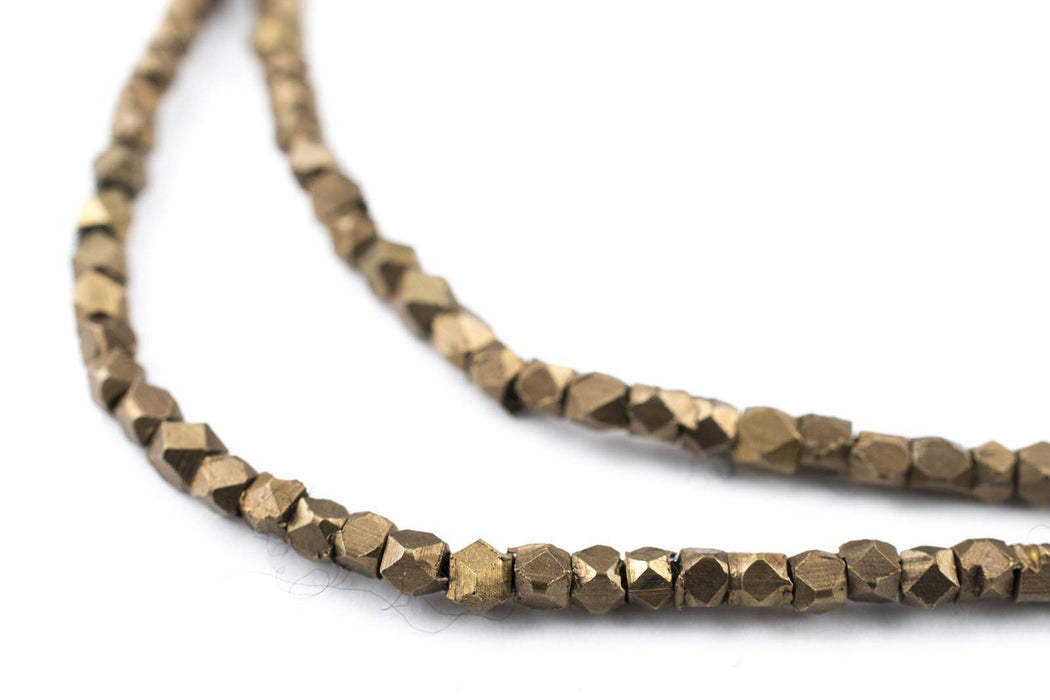 Take a look at this great strand of brass beads fashioned in a cube shape. Each strand is 18" inches long with approximately 190 beads measuring 2 x 2mm. These great beads are highly versatile and may be used as spacers or accents in your unique designs. A great addition to your beading toolkit! Please note a small percentage of beads per strand may not be usable due to irregularities as shown in photo.