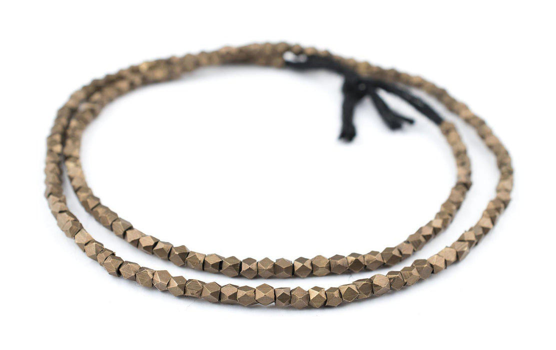 Take a look at this great strand of brass beads fashioned in a cube shape. Each strand is 19" inches long with approximately 140 beads measuring 3 x 3mm. These great beads are highly versatile and may be used as spacers or accents in your unique designs. A great addition to your beading toolkit! Please note a small percentage of beads per strand may not be usable due to irregularities as shown in photo.
