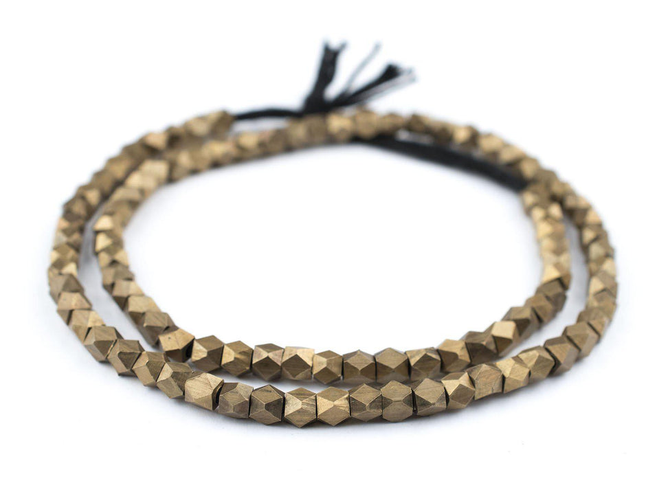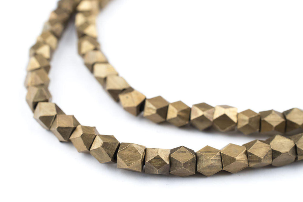 Take a look at this great strand of brass beads fashioned in a cube shape. Each strand is 19" inches long with approximately 90 beads measuring 5 x 4.5mm. These great beads are highly versatile and may be used as spacers or accents in your unique designs. A great addition to your beading toolkit! Please note a small percentage of beads per strand may not be usable due to irregularities as shown in photo.