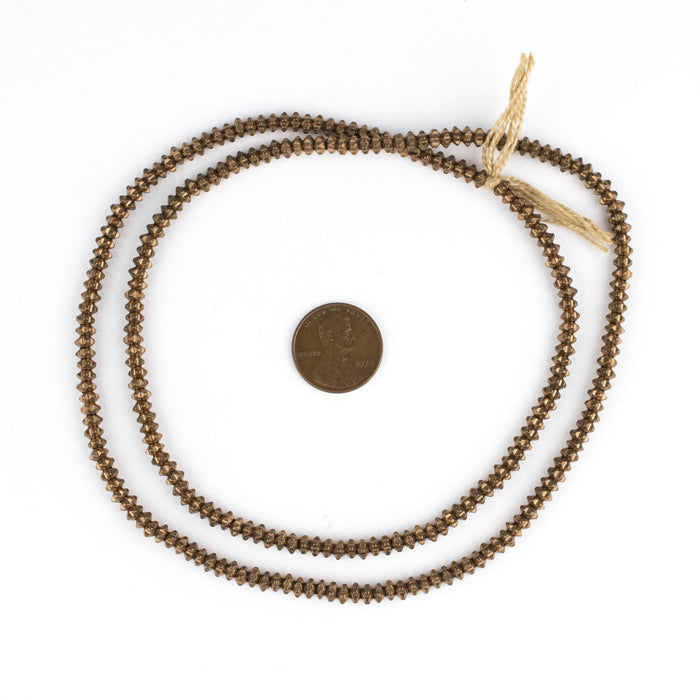 Take a look at this great strand of brass beads fashioned in a heishi shape. Each strand is 24" inches long with approximately 265 beads measuring 2 x 4mm diameter. These great beads are highly versatile and may be used as spacers or accents in your unique designs. A great addition to your beading toolkit!