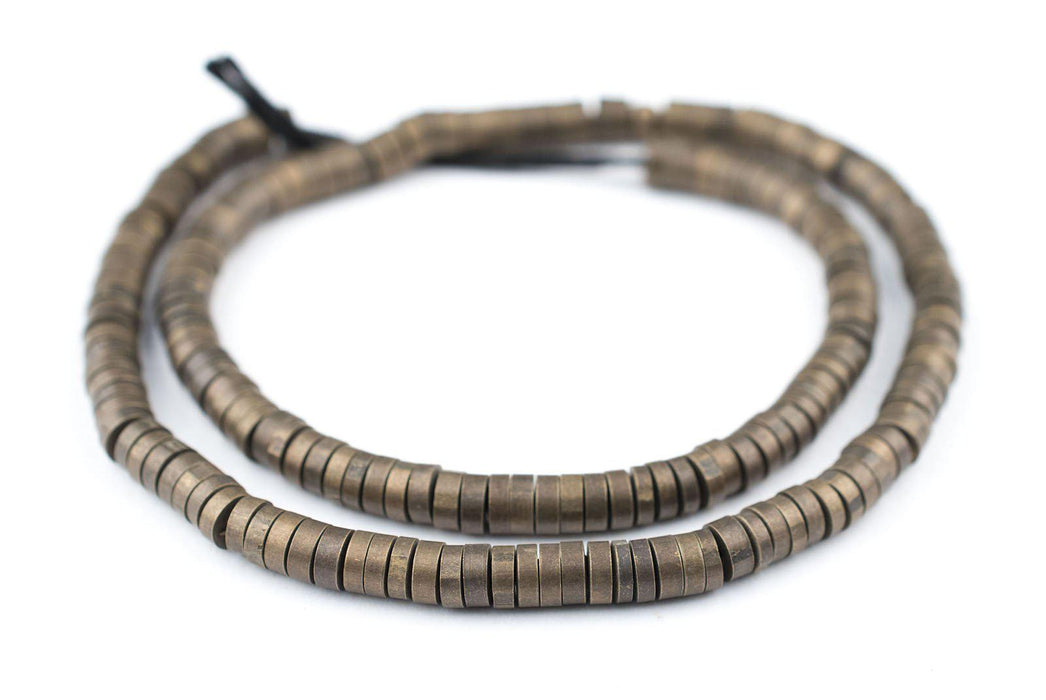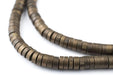 Take a look at this great strand of brass beads fashioned in a disk shape. Each strand is 18" inches long with approximately 200 beads measuring 2 x 5mm. These great beads are highly versatile and may be used as spacers or accents in your unique designs. A great addition to your beading toolkit! Please note a small percentage of beads per strand may not be usable due to irregularities as shown in photo.