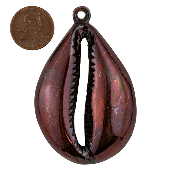 Distressed Rust Copper Cowrie Shell Pendant (7x66mm)