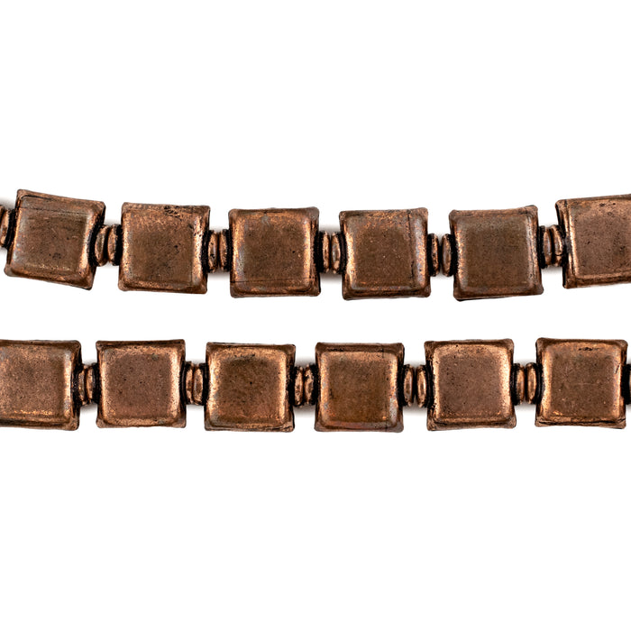 Enhance your jewelry designs with a touch of rustic charm with our Copper Hollow Square Beads. Crafted with intricate detail and a hollow center, these beads are both lightweight and versatile. Each bead measures approximately 9 x 8mm with a hole size of about 1mm. You will receive one strand measuring roughly 8" in length. Add these useful beads to your design toolkit today.