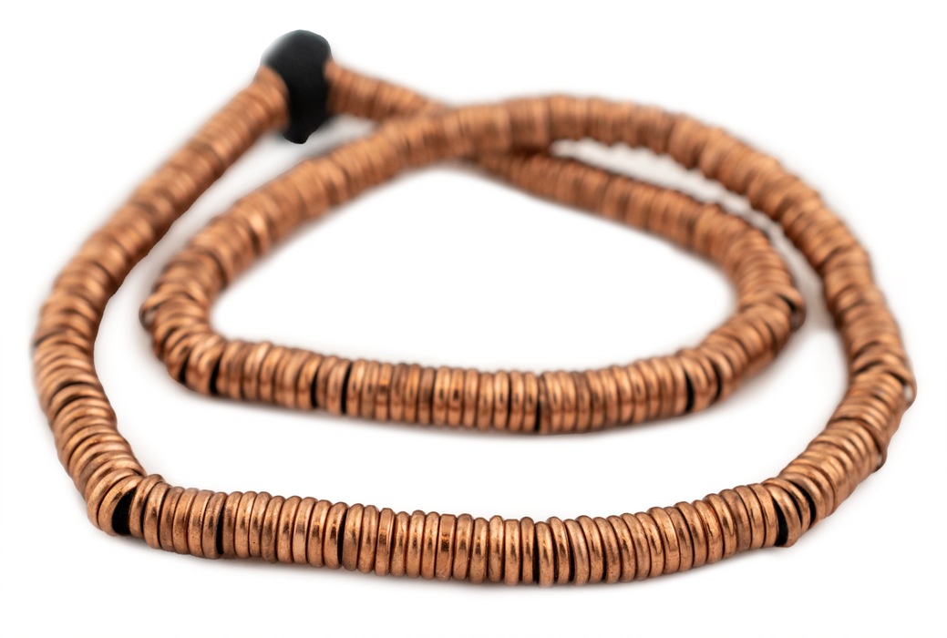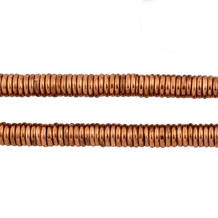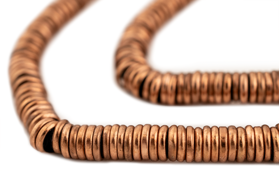 Take a closer look at the timeless look of these Antiqued Copper Ring Beads. The smooth and antiqued copper finish these beads will help add a touch of classic elegance to your jewelry designs. Each bead measures roughly 1.3 x 6mm with a generous hole size of about 4mm. You will receive one strand measuring approximately 16" in length. This artisan product is made using premium copper electroplating over brass to make these copper finish customer favorites. Add this great spacer and accent bead to your design toolkit today.