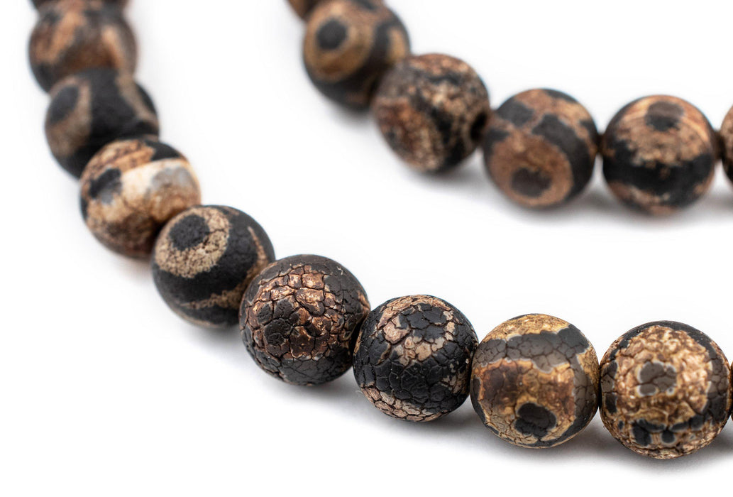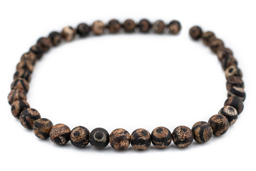 Take a look at these hand-patterned Tibetan agate beads. The special character of this stone bead is apparent by the unique translucence of the beads. Each of these beautiful round beads measures approximately 9-11 x 10mm. Each strand may show slight variation in color and pattern.