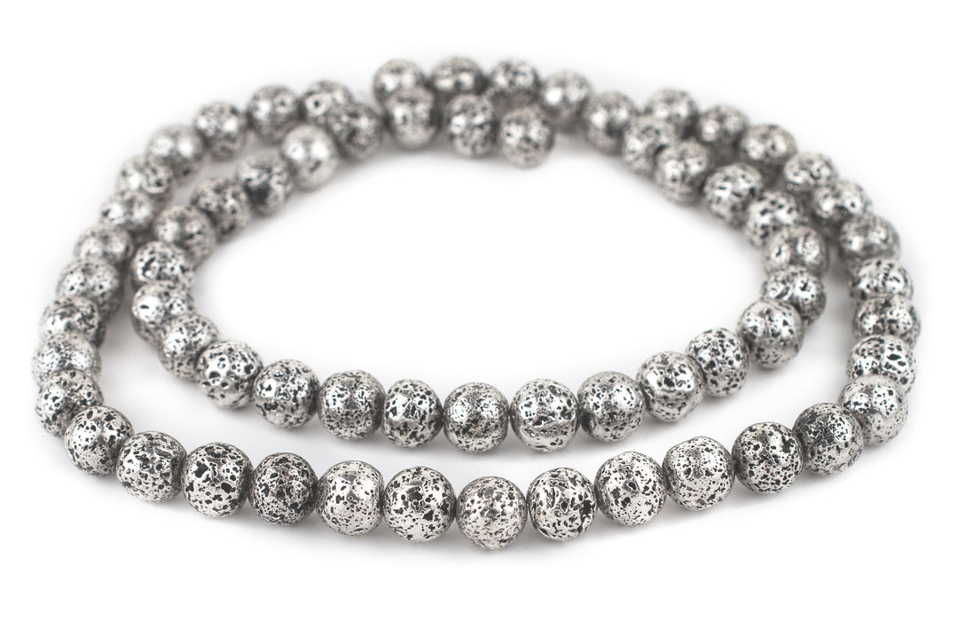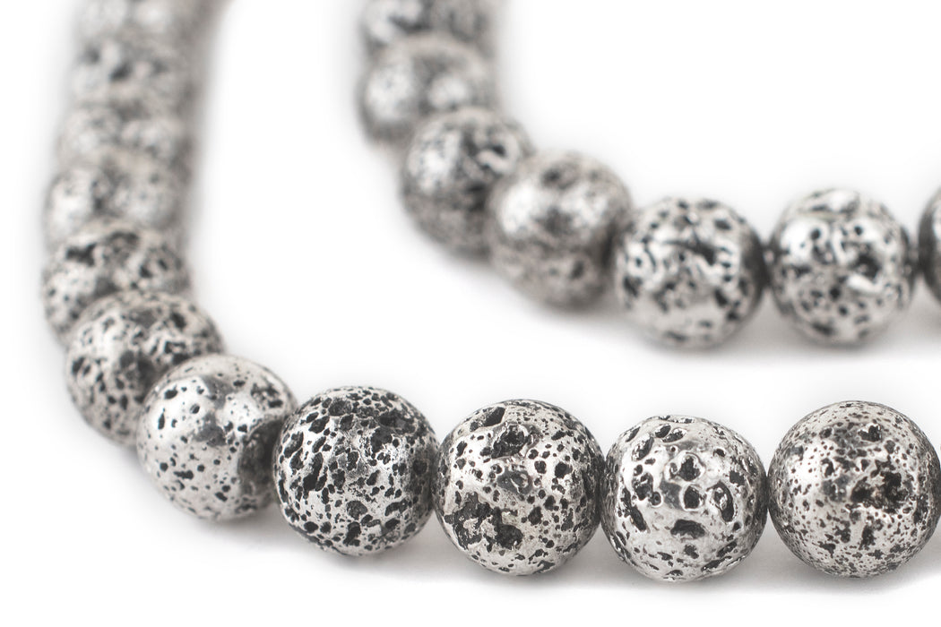 Antiqued Silver Electroplated Lava Beads (12mm)