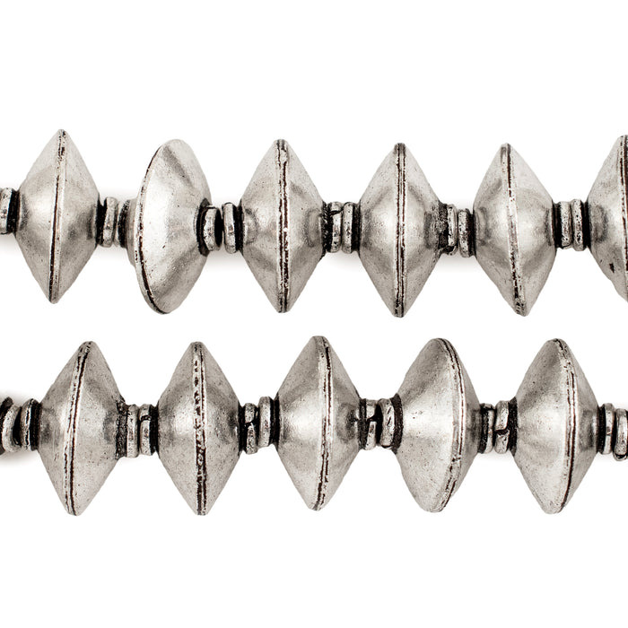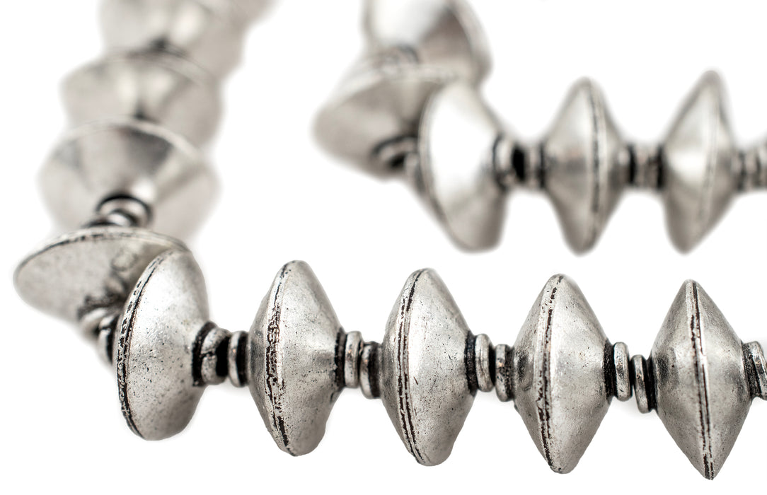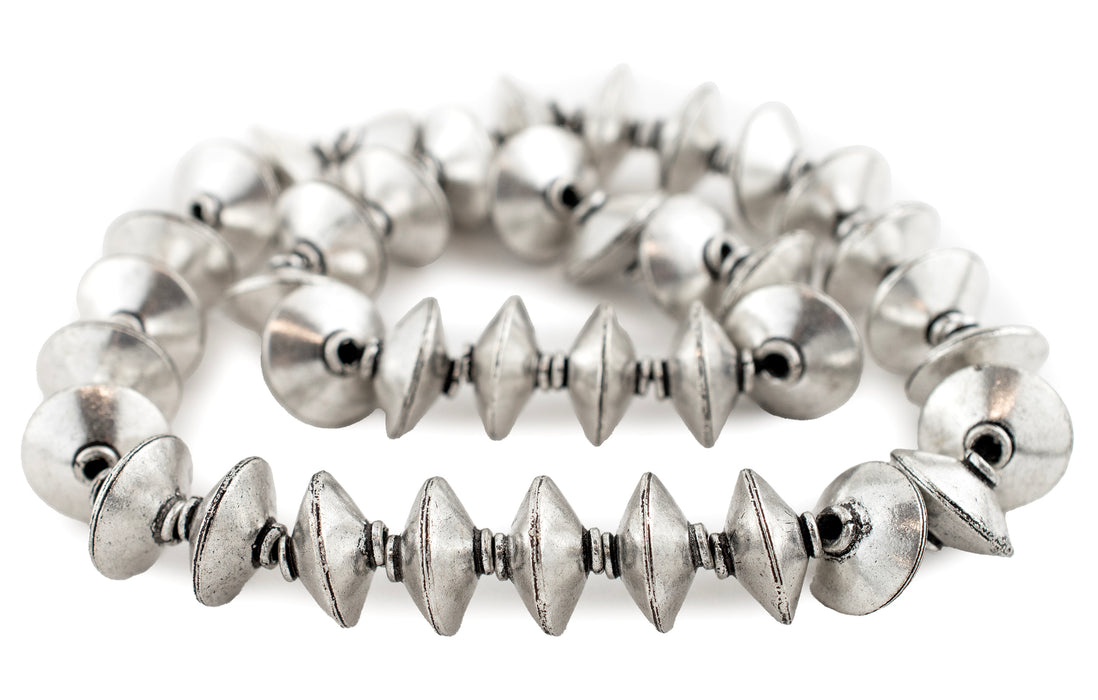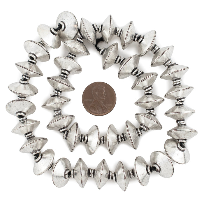 Elevate your jewelry designs with the classic elegance of our Antiqued Silver Saucer Beads. Each bead features a distinctive saucer shape, enhanced with a beautifully detailed, antiqued finish that adds depth and character. Made from heavier gauge metal, these beads are perfect for adding a vintage flair to your creations, these beads are ideal for crafting necklaces, bracelets, or sophisticated earrings. Each bead measures roughly 11 x 16mm with a hole size of about 2mm. You will receive one full strand measuring approximately 16" in length. Add this timeless strand to your design kit today.