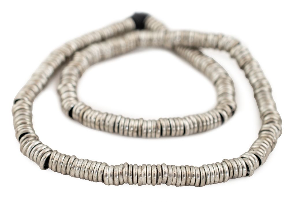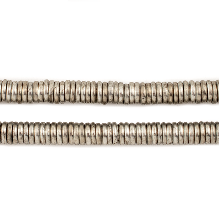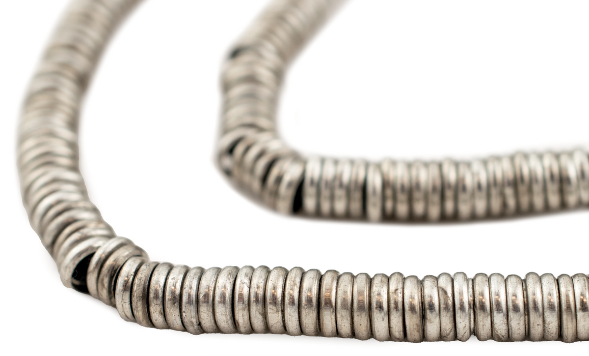 Take a closer look at these useful Antiqued Silver Disk Beads. These silver ring beads exude a classic charm, making them an ideal choice as spacer beads in intricate design projects. Whether you're creating necklaces, bracelets, or earrings, these beads will add a touch of refined brilliance and depth to your jewelry designs. Each bead measures roughly 1.3 x 6mm with a generous hole size of about 4mm. You will receive one full strand measuring approximately 16" in length. Add this staple bead to your design took kit today.