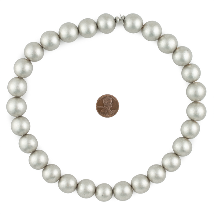 Antiqued Silver Round Natural Wood Beads (16mm)