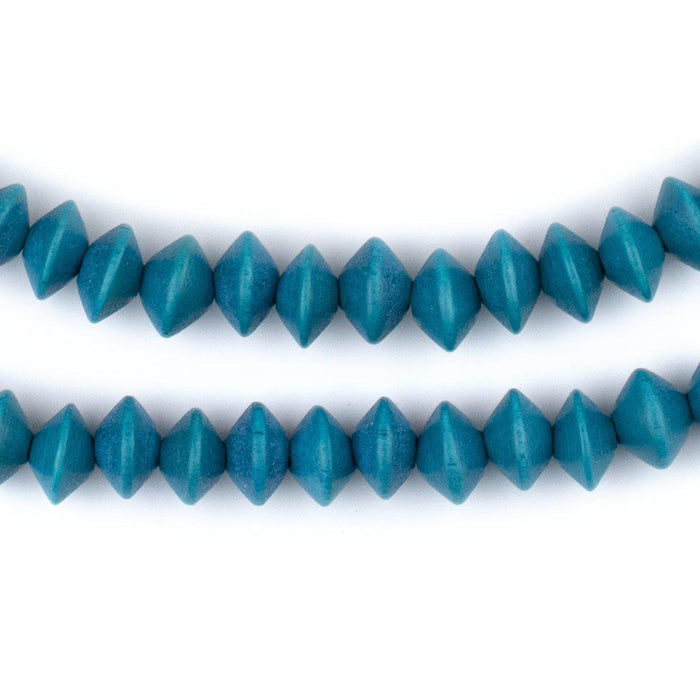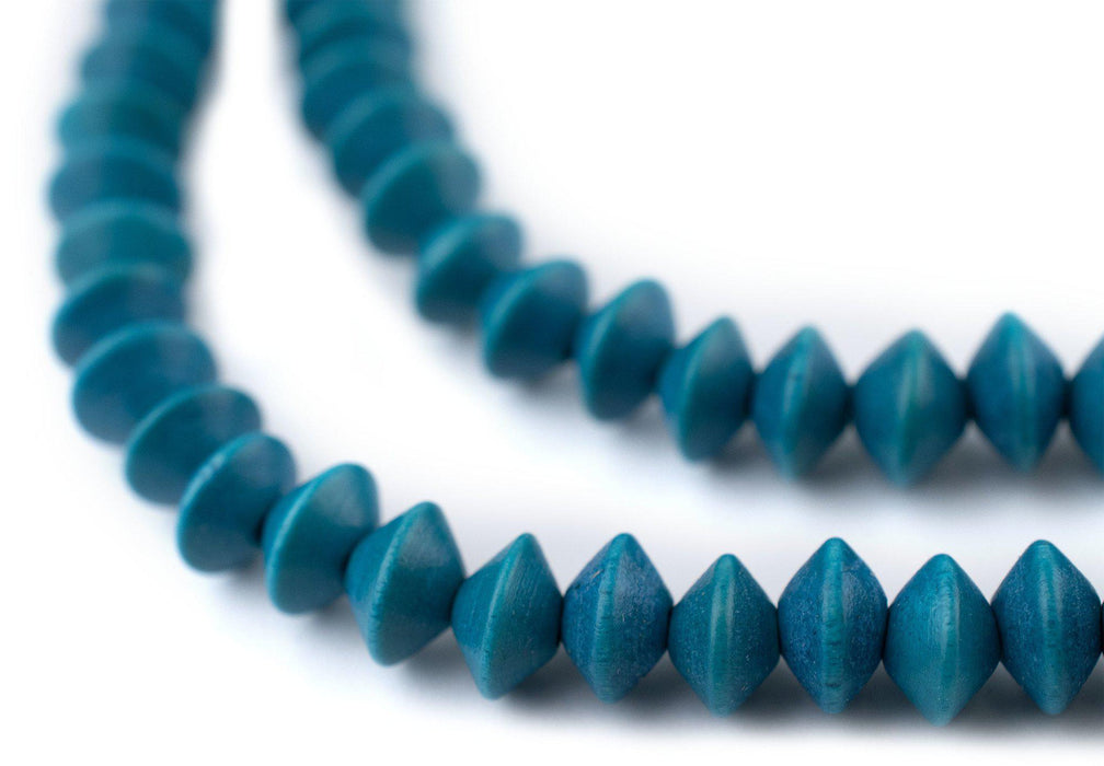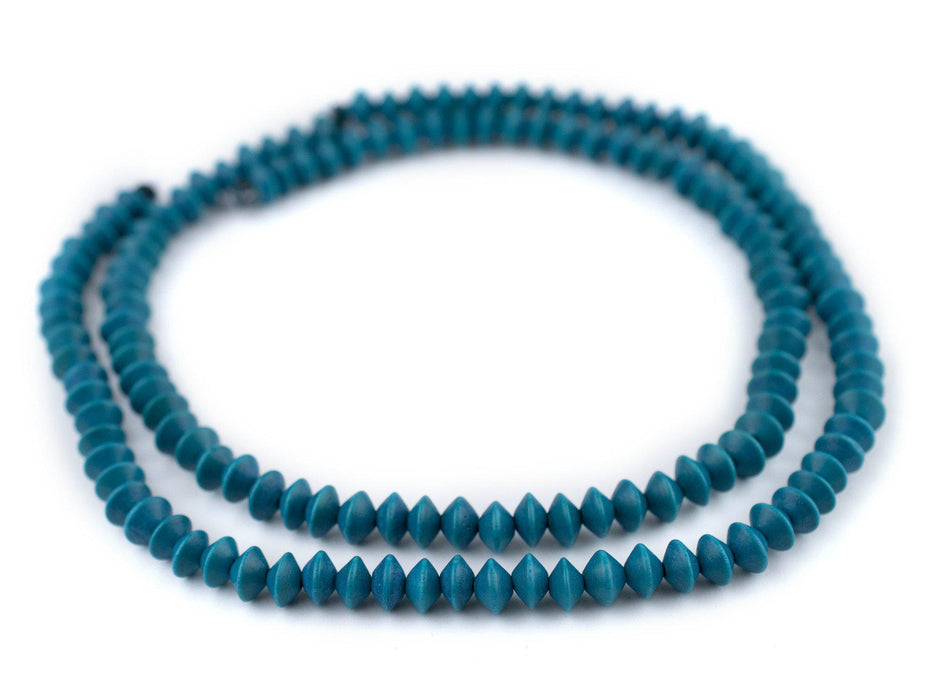Aqua Blue Bicone Natural Wood Beads (5x8mm)