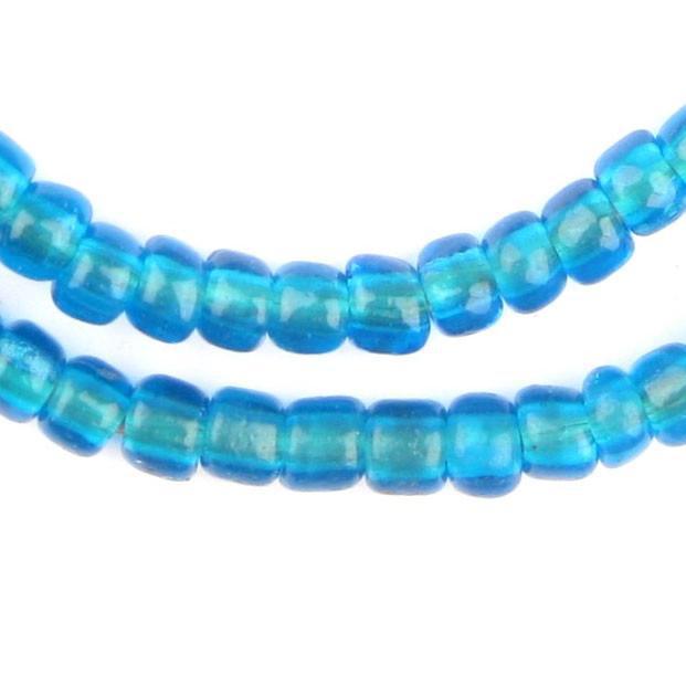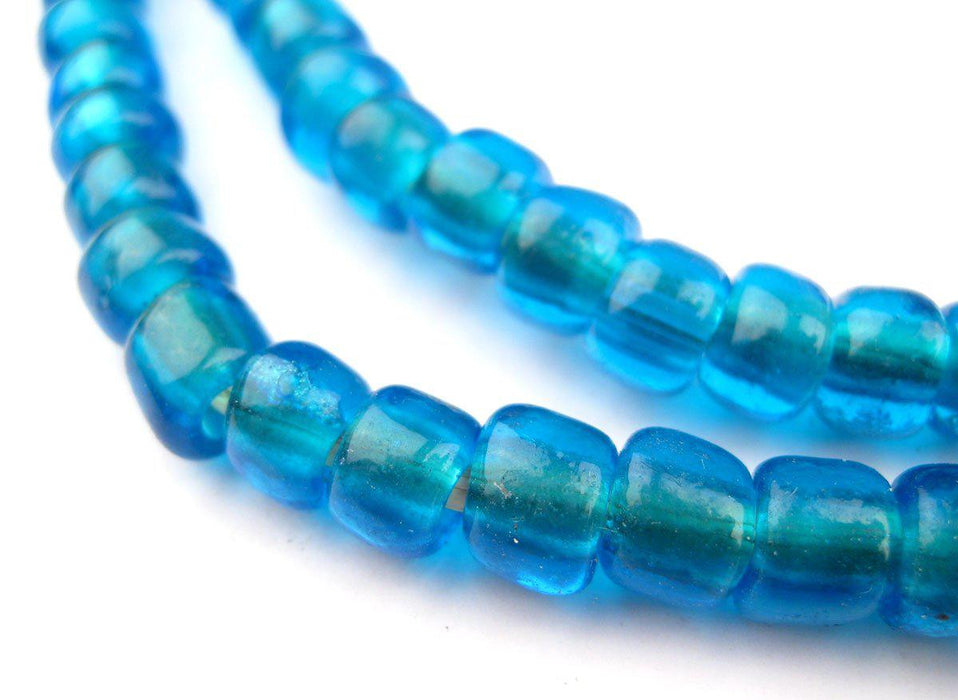 Take a look at these beautiful translucent aqua blue padre beads. Made from Czech glass, padre beads such as these have been traded in African since as early as the late 1800 - early 1900's. Individual beads measure approximately 6mm wide and 8mm in diameter. Versatile Beads. Get your strand today!