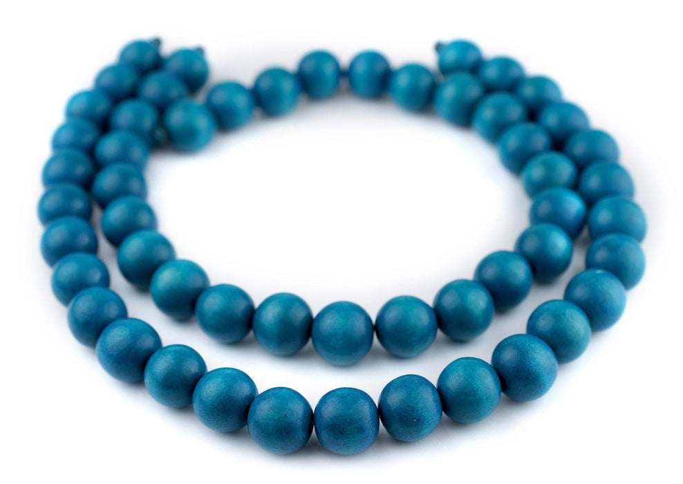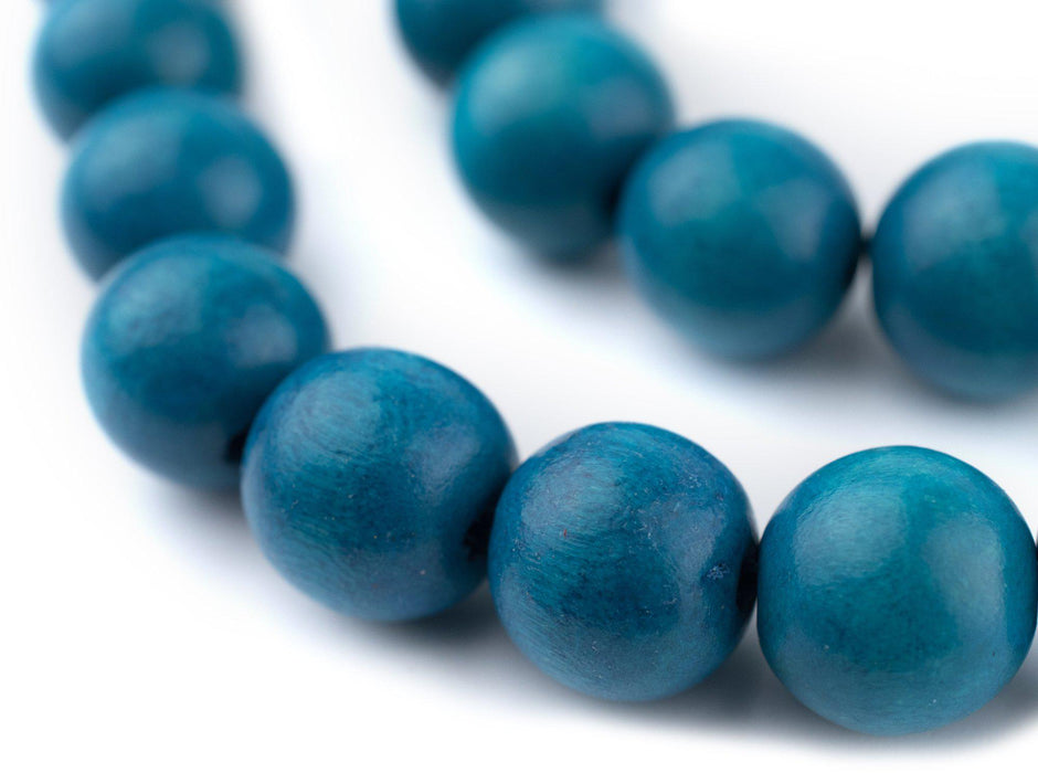 Aqua Blue Round Natural Wood Beads (16mm)