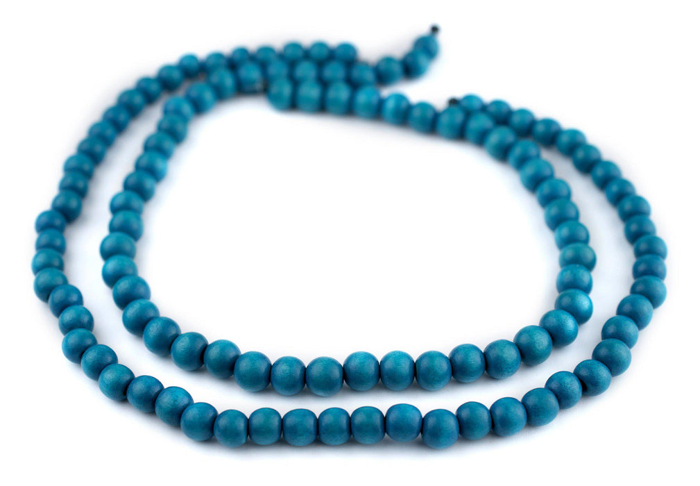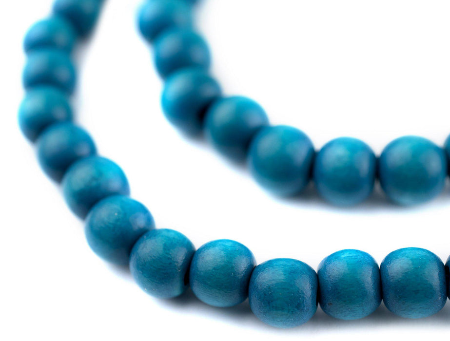 Aqua Blue Round Natural Wood Beads (8mm)