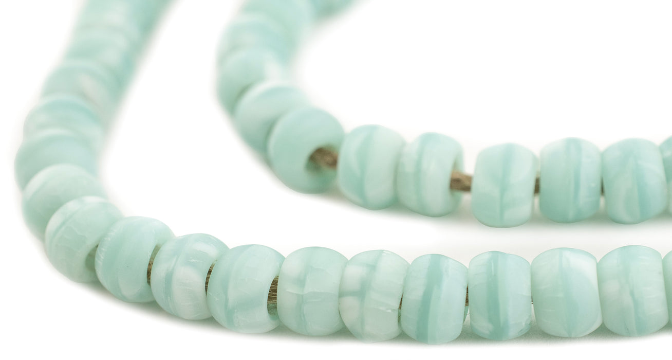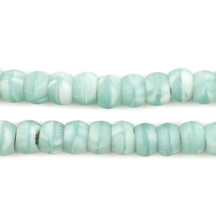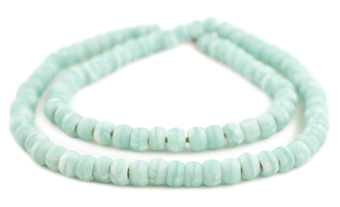 Dive into the refreshing beauty of our Aqua Green Padre Beads. Each bead features a mesmerizing blend of colors, reminiscent of the sea's tranquil surface. The unique marbled pattern and soothing color palette makes these beads an exceptional choice for crafting necklaces, bracelets, earrings, and more. Each bead is roughly 6-7 x 9mm with a hole size of about 2-3mm. You will receive one full-strand measuring approximately 24" in length. Grab a strand or two for your design tool kit today.