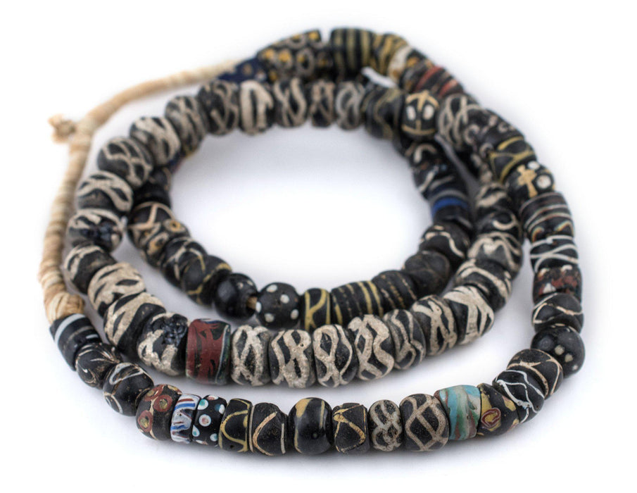 Old Trade beads such as these are as beautiful in their design as they are exceptional in their craftsmanship. Venetian glass beads were known for centuries as the highest quality and the workshops of Venice rose to prominence as the source for many of the iconic beads that are today associated with the African trade. This unique strand includes a medley of antique designs in both round and rondelle shapes and measures approximately 32" in length with beads arranged in a graduated fashion. These special beads would be suitable for the collector, bead connoisseur, or discerning designer. Some beads may be cracked or chipped due to age. You will receive the exact strand pictured.