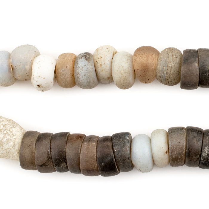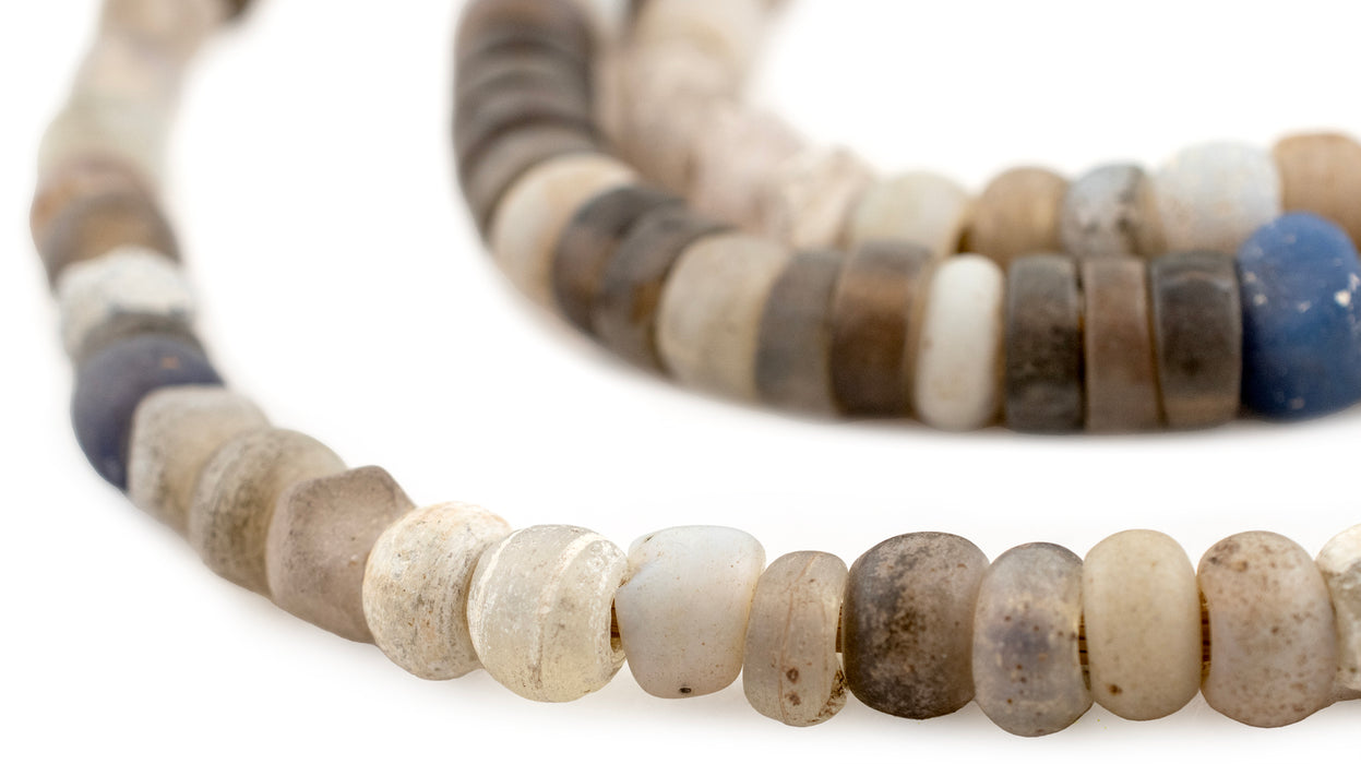 If you are looking for something special, this is it. These unusual Moon Beads are hard to find and are known for their unusual opalescence. European traders once used these beads to trade with the people of Ethiopia and East Africa. Today, Moon Beads are prized by history aficionados and coveted by collectors of old beads alike. Their exact age is unknown but it is believed that they may be as much as several hundred years old. This long strand has a nice assortment of different shaped beads and measures approximately 38" in length. You will receive the exact strand pictured.