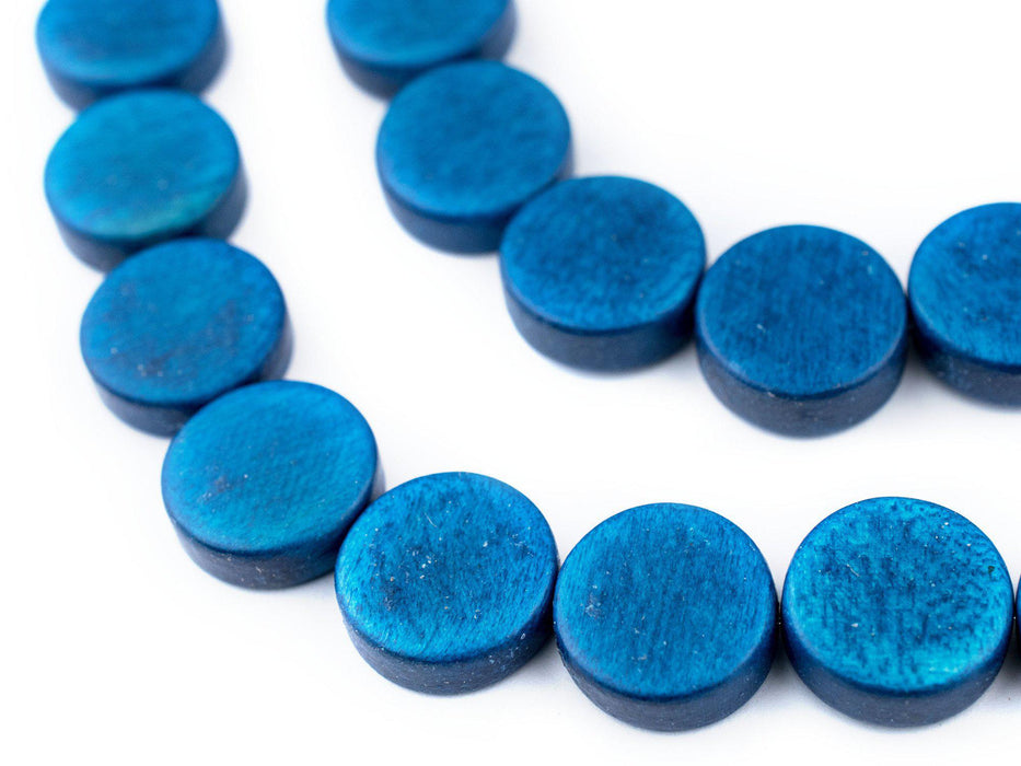 Azul Blue Circular Natural Wood Beads (15x15mm)