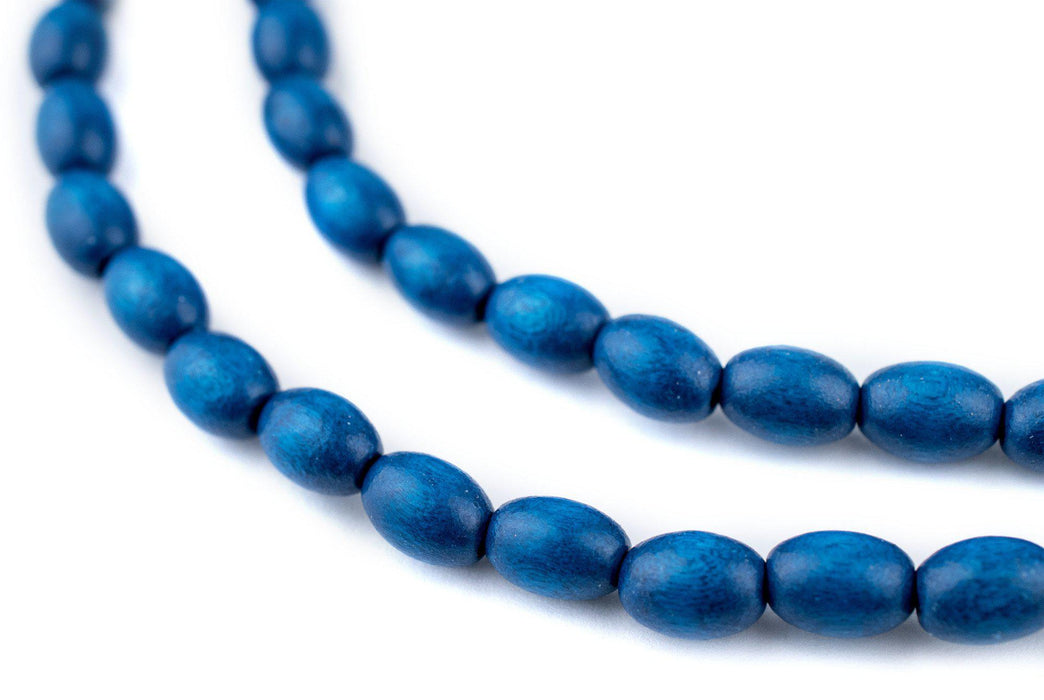 Azul Blue Oval Natural Wood Beads (9x6mm)