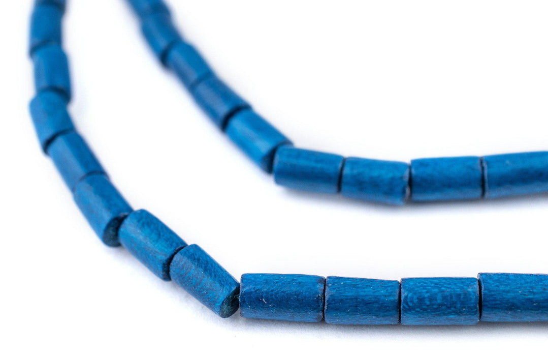 Azul Blue Tube Natural Wood Beads (7x5mm)