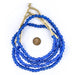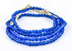 Recycled glass beads are a type of indigenously produced African bead from Ghana West Africa. These beautiful blue color recycled beads are made using an old method that has been used for centuries. The glass itself is derived from a variety of recycled sources including old beverage and medicine bottles. The procedure for making the beads consists of a number of steps whereby powdered glass is poured into molds of clay and baked in a specialized oven. These beads are produced in large part by the Krobo tribe and through recycling glass are environmentally friendly. Multiple strands pictured. Each strand is sold individually.