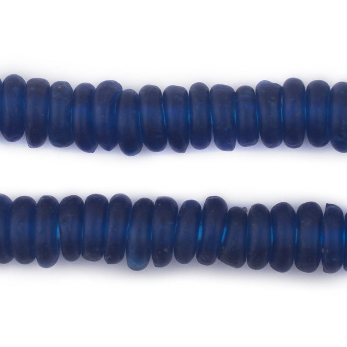 These great beads are made by the Krobo People of Ghana, Africa. Powder glass beads are made by crushing glass to a fine powder and heating it so that the particles fuse together. The glass is then poured into clay molds, with a cassava leaf stem used to make the hole. They are baked in an oven and the glass fuses and the cassava stem burns up. This technique has been used in Africa for centuries. Shade of beads may vary slightly from strand to strand.